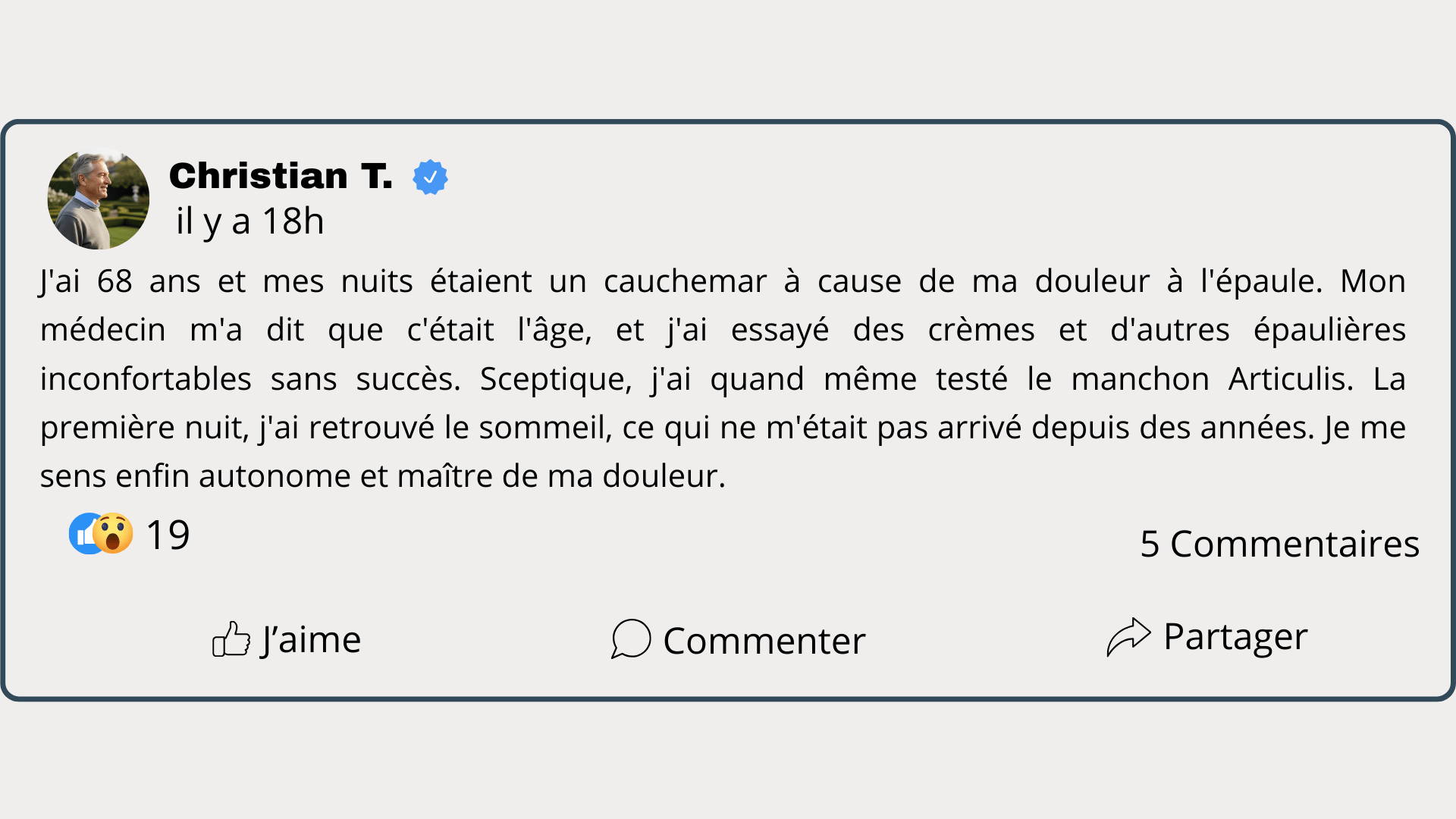 « Après 2 semaines, je peux enfin lever le bras sans grimacer. »